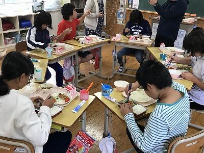 そば打ち体験では、講師や保護者の方々に手順を教えていただきながら活動をし、そばを打った後、全員で試食を行いました。自分たちで栽培したそばの味は格別のようでした。子どもたちは、これまでの活動を思い出しながら、おいしくそばをいただいていました。