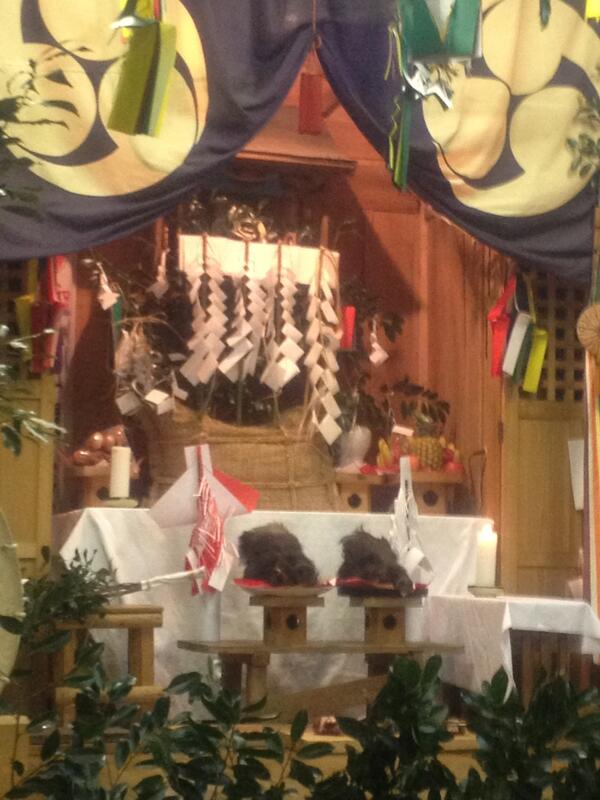 ・ 14日~15日は尾前地区の神楽でした。4地区あるうちの3地区目でしたが、やはり満員の大盛況でした。写真には雄と雌のいのししの頭があります。また、地区の中学生も神楽を奉納しました。
