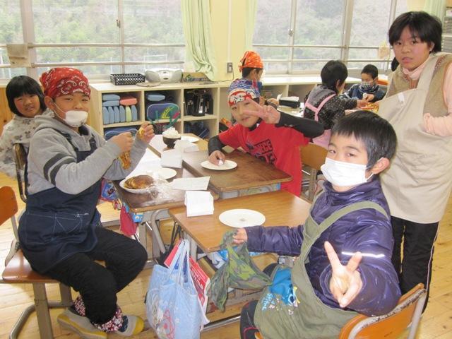・ 出張等で留守をしていたため、更新するのが少し遅くなりました。遠足は、村のバスを2台借りて、熊本県上益城郡山都町にある「そよ風パーク」へ行きました。「そよ風パーク」は,運動場、コテージ、物産館、ホテル、テニスコートなどがある、とても広い施設です。今回の遠足では、1,2年生が「パン作り」、3~5年生が「ブルーベリージャム作り」の体験も行いました。はじめて体験した児童も多く、お土産もできてとても嬉しそうでした。