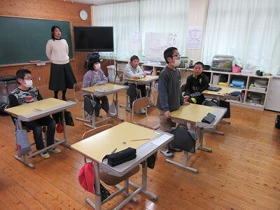 1月から、給食を全校児童で一緒に食べています。今回のハッピー誕生会は、給食中に行いました。