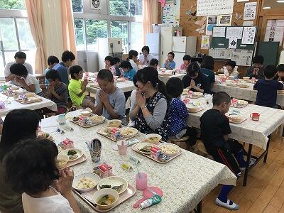 また、交流給食も実施し、地域の高齢者の方々や自分のおじいちゃん、おばあちゃんと一緒にお話ししながら、美味しい給食をいただきました。
