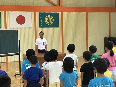 式終了後には、こころ担当、まなび担当、からだ担当の先生方から、夏休みの過ごし方についてのお話がありました。39日間の夏休みを、誰一人命を落とすことなく、楽しく過ごしてもらいたいです。