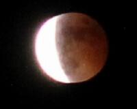 校長住宅から写真を撮りましたので紹介します(月が見え始めたのが午後7時半頃です。欠けていく状態が撮影できなかったのがとても残念でした)。