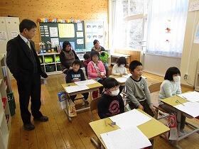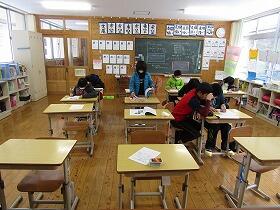 早速教室に入り、いつもの複式学級ではなく各学年単式で授業が行われました。いつもとは違う雰囲気で、初めは固かった子ども達ですが、時間が進むにつれてだんだん打ち解けてきて、笑顔が見られるようになってきました。