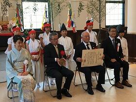 東京オリンピックの聖火リレーで椎葉村代表聖火ランナーとして走られた方のご厚意で、椎葉村の学校にトーチが展示されました。アルミニウム素材の金色で上から見ると桜の花の形をしています。子どもたちは手袋をして実際に手に持って聖火ランナー気分を味わっています。子どもたちのために貴重な資料をお貸しいただき、ありがとうございました。