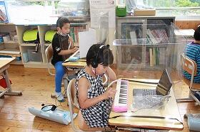 本校の特色ある活動の一つである「鼓笛」の練習がありました。今年は練習が昨年とは違い、タブレットとヘッドセットで模範演奏を聴きながら練習をしています。速度を自分の力に合わせて変えられるので子ども一人一人に合わせた練習ができます。これから運動会での発表に向けて26人の子どもたちが力を合わせてがんばります。