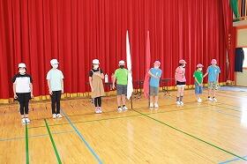 1学期の終業式が21日にありました。児童代表で3年生が友達と協力してカブトムシを育てたこと、水泳のバタ足の練習をがんばったこと、タブレットが上手に使えるようになったこと、姉妹で仲良くできたこと等、1学期にがんばったことの発表をしました。その後、校長から1学期の振り返りと平和の大切さについての話がありました。式の後、7月いっぱいで離任される用務の先生とのお別れ会がありました。72日間の1学期が終わりました。みんな元気にがんばってくれました。8月30日に26人の元気な顔を見るのが楽しみです。