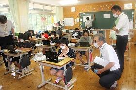 29日に椎葉村議会議員10名、議会事務局2名、教育委員会2名が来校され、本年度整備していただいたタブレットを子どもたちがどのように活用しているかをご覧になりました。教師の授業での活用状況や子どもたちの学習の様子を見て大変感心されていました。今後も引き続きタブレットの積極的な活用に取り組んでいきます。