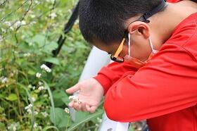 7月下旬に蒔いたそばの種が芽を出し育って、現在花満開です。今日は雨の合間に現地に行き、そばの観察を行いました。そばの花には2種類あって、その違いを自分の目で確かめていました。中には実を付けているものもあり、収穫が近いことも感じました。そばの花のスケッチは学校に帰ってから取り組みました。子どもたちは観察をとおして、収穫が楽しみな様子でした。