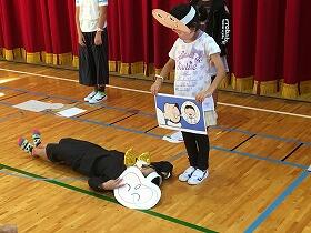 保健委員会の発表がありました。テーマは「睡眠」についてです。午後11時以降に就寝する子どもが7人、朝ご飯を食べてこない日がある子どもが7人という無記名アンケートの結果を受けての発表でした。子どもたちは、映像と寸劇で睡眠と朝ご飯の大切さが理解できたようです。地域によっては神楽の練習も始まっているようなので、時間を有効に使うことについても指導しています。
