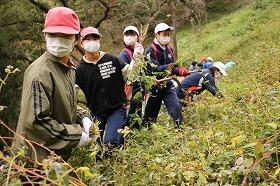 秋晴れの空のもと、焼畑体験学習「収穫」を行いました。今回は、椎葉中学校の2年生も一緒に取り組みました。焼畑地には7月30日に蒔いたそばがたくさんの実を付けていました。1~4年生ははさみを使い、5・6年生は鎌を使って収穫します。斜面に気を付けながら安全に作業できました。刈り取ったそばは棒で叩いて実を落とし、何回もふるいにかけ、昔の道具であるとうみに入れて軽いものは飛ばし、実だけを取り出します。長年続けてきた学習なので、子どもたちも慣れた手つきで作業に取り組みました。「火入れ・種まき」から「収穫」まで、地主様や保護者、地域の方々のご理解とご協力がありました。ありがとうございました。11月24日の「収穫祭」に向けて諸準備に取り組んでいきます。