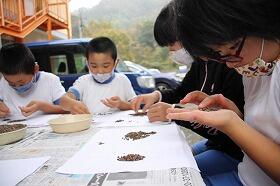 そばの収穫から3週間程が経ちました。今日は収穫したそばの実に混ざっている石等を取り除く作業を行いました。そばと石が区別できるように白い紙の上で作業を行います。みんな真剣な表情で取り組みました。今日は全体の10分の1くらいしかできませんでした。収穫祭に向けて明日からも取り組んでいきます。