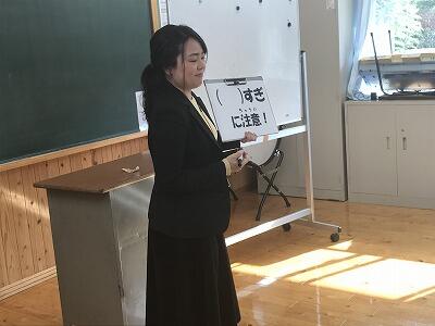 【こころ担当、まなび担当、からだ担当の先生方から冬休みの過ごし方についてのお話がありました】↓