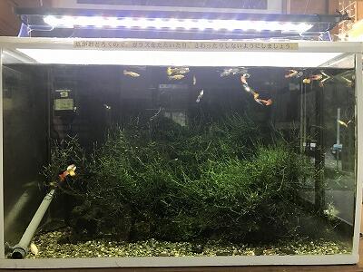 ※教頭先生が6月にグッピーの雄と雌を5匹ずつ、コリドラスを1匹買ってきましたグッピーが卵を産み、見事にふ化し、今では沢山の稚魚が元気に泳ぎ回っています。