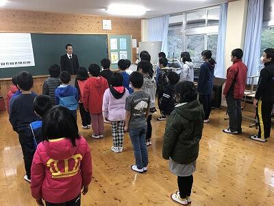 今朝は、朝から曇り空で、広い体育館では気温が低いため、音楽室で終業式を行いました。今日の終業式をもって、2学期が無事に終了しました。子どもたちは、運動会や平家まつり、焼畑体験学習収穫、収穫祭と超がつくほど多忙な2学期でしたが、一つ一つの行事や授業等に全力で取り組むことで、大きく成長しました。これもひとえに、日頃から温かく見守り、支えてくださった保護者の皆様及び、地域の方々のお陰です。本当にありがとうございました。