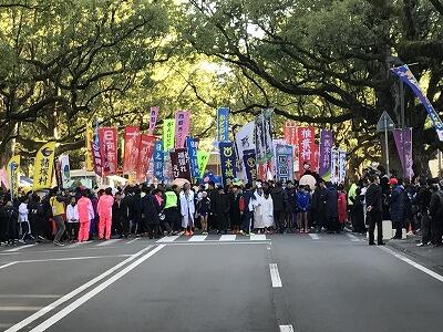 大晦日から、朝方は毎日-5℃前後の気温で、肌を刺すような寒さが続いていますが、お昼過ぎからは、暖かい日差しが顔を出しています。団員の皆さんのきびきびとした集団行動や号令の声が響き、キレイにそろった整列と足音に、身が引き締まる思いがしました。