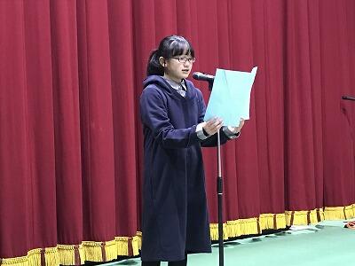 【5年生代表児童による新年の抱負発表】↓ ※聴く態度も立派です!