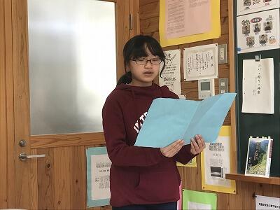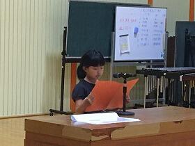 一つ目は「自分でしっかり早起きをする!」二つ目は「自分から進んで、先生方や家の仕事を手伝う!」三つ目は「自分から大きな声で気持ちの良いあいさつを、朝でも昼でも夜でもする!」と、しっかりと発表をしてくれました。