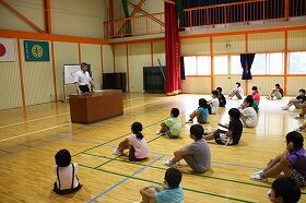 今日は、椎葉村消防団第10部の部長さんに来ていただき、火災による避難訓練を実施しました。