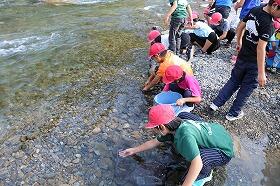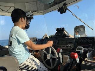 子どもたちは、海の中を見たり、船の上から海面を見たりと、