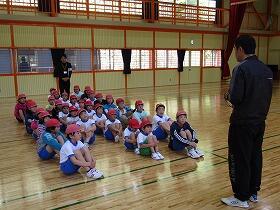 体力テストが始まっています。学年毎でも行いますが、「反復横跳び」等の種目は全校児童で行い、高学年が低学年とペアを組み回数を数えます。5・6年生がやり方の見本を見せてみなんで取り組みました。