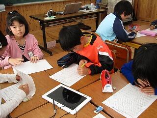 10月28日(水)子ども達の「うーん!」という声が聞こえてきそうな感じですが、3・4年生が作文に取り組んでいました。先生に何度も朱書きをもらいながらも、丁寧な文字で一生懸命に作文を書いていました。