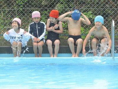 梅雨まっただ中、雨模様の毎日ですが、気温が少しずつ上がってきて、水泳指導がやっと本格化してきました。今日は、3・4年、5・6年がプールに入りました。3・4年は、水中宝探し・だるま浮き・クラゲ浮き・大の字浮き等水に慣れる運動を楽しそうにやっていました。5・6年はさすがに泳ぎが上手く、ふし浮き・けのび・クロール・平泳ぎと本格的な泳ぎの練習をしていました。7月には村の水泳大会もあることから、これから益々練習に熱が入ることでしょう。