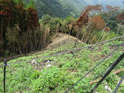 1回目のやぼきりからおよそ1ヶ月半が過ぎましたが、山肌はまた竹や雑草に覆われていました。しかし、作業が始まると瞬く間にきれいに刈り取られました。