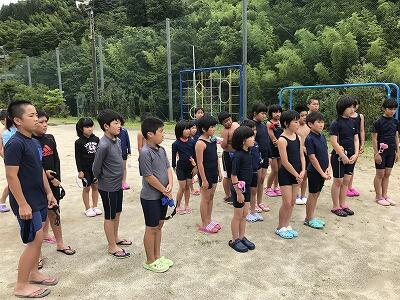 今日の午後から、不土野小の3年生から6年生までの児童が尾向小に来校し、水泳の合同授業を行いました。それぞれの担任の先生方4名が、中学年と高学年に分かれて指導しました。