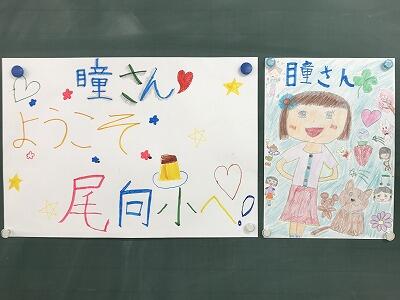 【ウゥルカムボードを3・4年生が準備してくれました】↓