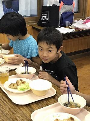 給食調理員の2名の先生方には、美味しくて、安心、安全な給食を毎日提供していただきまして、あれりがとうございました。2学期もよろしくお願いいたします。