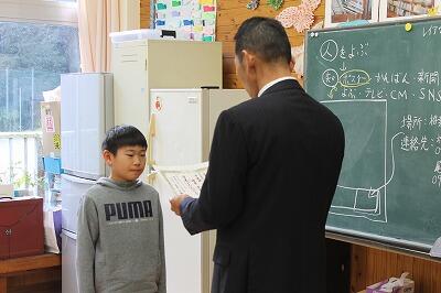 表彰式では、第44回「みどりの絵コンクール」において、優秀賞と入選を獲得した児童2名、県児童文集「ともだち」に応募し、優秀賞を獲得した児童2名の表彰を行いました。