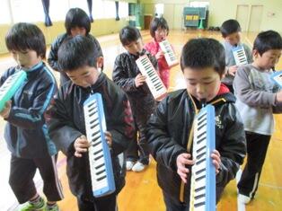 ・ 3時間目は、全校児童で合奏をしていました。5名の職員がきめ細かく指導をしていました。披露する日が楽しみです。