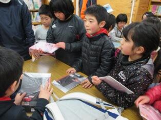 ・ 中学年では、父母に感謝の手紙の朗読と、手作り花束の贈呈がありました。高学年でも「手作りバック」の贈呈がありました。また、バックの中に父母へのメッセージも記されていたようです。写真は、中学年の手紙朗読と花束贈呈の場面です。