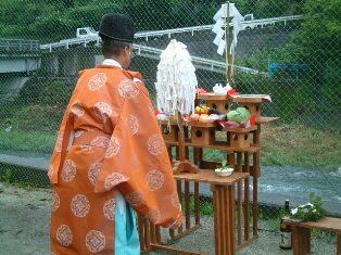 ・ 今日は渓谷祭りです。午前6時30分から、尾前神社宮司様による神事がとりおこなわれた後に、釣り大会が開始されました。県内外から来られている多くの釣り人達が、学校横の川で釣り糸をたれていらっしゃいます。