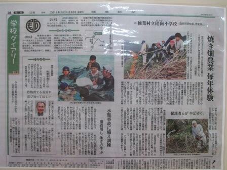 ・ 8月8日の読売新聞の学校ダイアリーに、本校の焼畑が掲載されました。今年は、読売新聞の記者さんが、「やぼ切り」「火入れ」と、それ以外の日にも取材に来られ、記事にして下さいました。やはり新聞やテレビに出ると、とてもうれしいものです。
