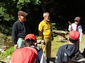 交流椎葉も最終日となりました。2泊を共にした子ども達はすっかり打ち解け、活動中も笑顔が絶えませんでした。今日は地域の方々のご協力により、学校から約2km下流の尾前川の河原で、ソーメン流し、竹細工、的射(まとい)を楽しみました。尾向の大自然に抱かれ、水底まで青く透き通る川のほとりでの活動は尾向でなければ体験できないものでした。