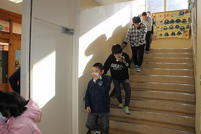 火災を知らせる放送から約2分で全員が運動場に避難することができました。