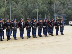 運動場では、明日の椎葉村消防団出初め式に向けて、第10部と第11部の皆様が早朝より訓練をされています。ひんやりとした空気の中、きりっとした号令の声とザッザッという靴音が響いています。