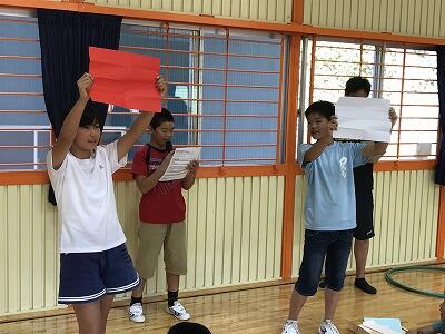 今日の業間の時間を使って、9月に実施されます、運動会のスローガン発表と赤、白の団分け、結団式を行いました。