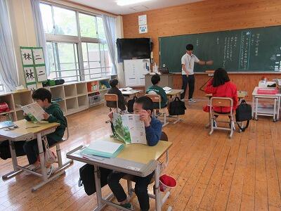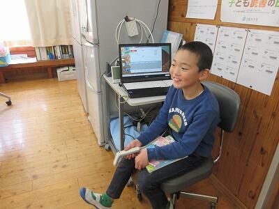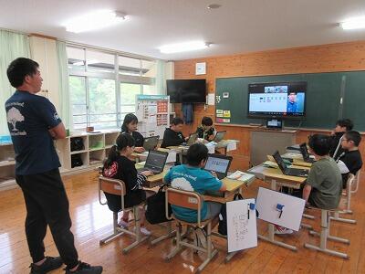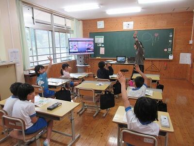 低・高学年は不土野小とオンラインでつないで道徳の授業を行っていました。