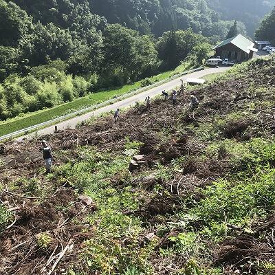 14日(土)は、朝から、30℃近くまで気温も上がり、うだるような暑さの中、30日(月)に実施されます、焼畑火入れのための下準備「やぼきり」を行いました。