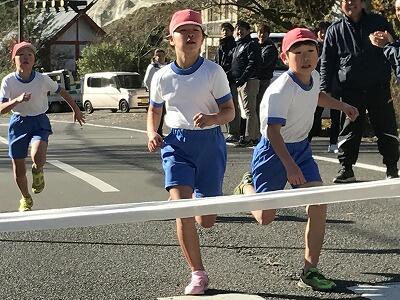 子どもたちは、これまでの練習の成果を発揮するために、スタート直後の前半から積極的な走りを見せ、特に、後半の上り坂では必死の表情で走り切り、見事全員完走しました。保護者の中には今年も、子どもたちと一緒に走られる方もいて、とても盛り上がりました。