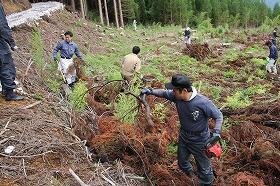 焼畑学習「やぼきり」を5日に実施しました。今年の焼畑地は標高1000mを超える高地にあります。休日返上で集まっていただいた保護者の皆様が竹や雑木を伐採したり、「火入れ」時によく燃えるように杉の落ちた枝をまくったり、水源を確保したりと、それぞれの方々が熟練の技で取り組んでいただきました。尾向小学校の「子ども焼畑学習」が代々受け継がれていることを強く感じました。雨の後の作業でしたがけがも無く無事に終えることができました。ありがとうございました。