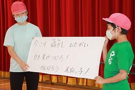 9月に行われる運動会の結団式を行いました。ペットボトルを振って水の変化で団色を決定しました。それぞれの団長と副団長が運動会に対する思いを発表しました。校長からは「26人の懸命な姿で尾向の皆さんに夢と希望を届けよう」と話がありました。すでに鼓笛の練習は始まっていて、競技の練習は9月からになります。子どもたちのがんばる姿が楽しみです。また、家庭教育学級の役員さんに運動会の掲示物を作成していただきました。26人の顔写真で生き生きとした作品です。子どもたちも大喜びです。ありがとうございました。