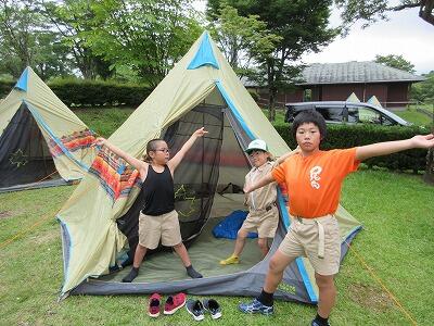 その後、キャンプ場に移動してテントの設営をしました。キャンプ場の方が親切に教えてくださり、みんなで力を合わせてテントを組み立てることができました。とても嬉しそうでしたよ。