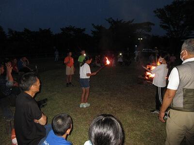 その後、東大宮小と一緒にキャンプファイヤーを楽しみました。それぞれの出し物やゲームで大いに盛り上がりました。ふだん限られた人数で過ごしている尾向小の子どもたちにとって、とても刺激的で充実した時間だったようです。