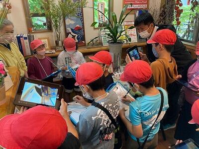 応対していただいた方に積極的に質問する姿が見られました。分かったことをメモしたり、タブレットで写真を撮ったりしました。これから、地域の様子についてまとめていきます。