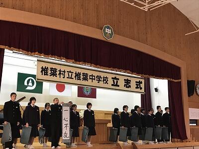 今日は椎葉中学校の立志式に行ってきました。多数の来賓、保護者の方々が見守られる中、中学校2年生が、昔の「元服」にちなみ座右の銘や立志の決意、将来の夢や希望を発表しました。尾向小の卒業生の子どもたちも、堂々とした態度で発表していました。