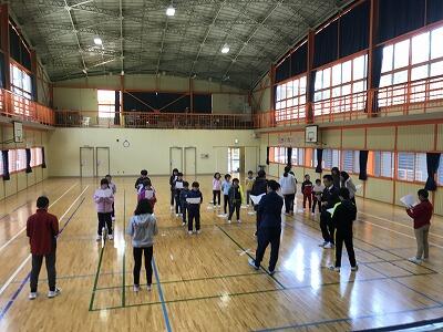 【全校児童が体育館に集合して練習しています】↓